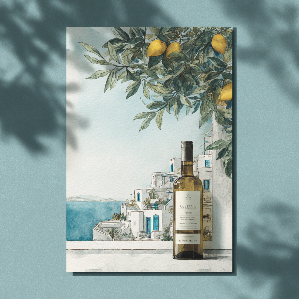 В букете - молодая хвоя, цитрусовая цедра, розмарин, шалфей, лёгкие бальзамические оттенки. Во вкусе заметна бодрая кислотность, чистый фрукт (лимон, зелёное яблоко, груша) и деликатная смолистая горчинка в послевкусии. Современные виноделы работают точнее: используют нержавеющую сталь, контролируют дозировку и контакт со смолой, поэтому лучшие образцы получаются лёгкими, хрусткими и удивительно гастрономичными.